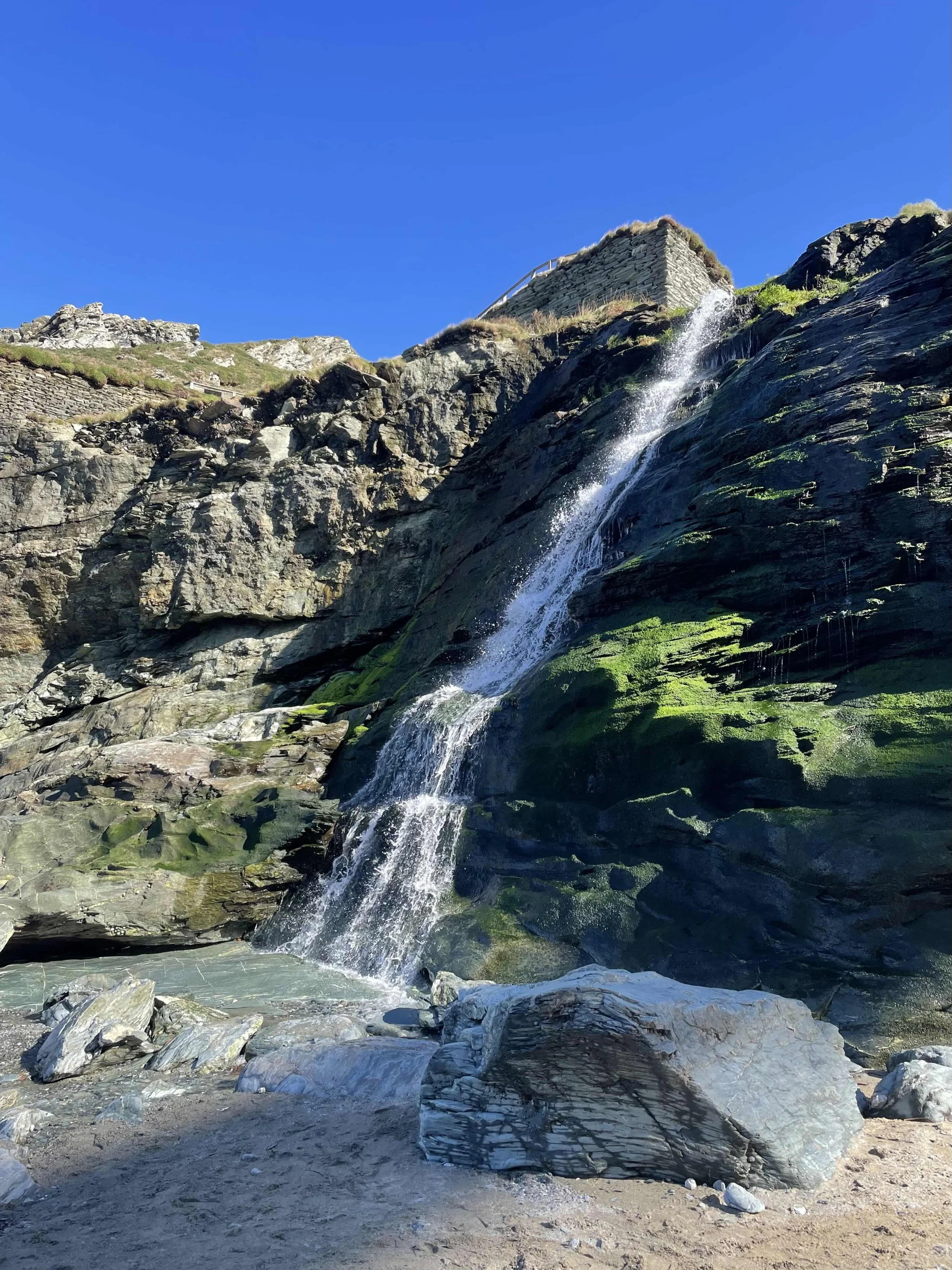 On the Monday we drove up to Tintagel, an English Heritage site known for its association with the legend of King Arthur. You can see some of the castle ruins along the top edge of this cliff. This was by far one of the most spectacular landscapes we visited, but my favourite image was of this waterfall. You can find this by crossing the famous bridge and walking down the steps to the beach. I wish I’d photographed it earlier in the day, but I was pleasantly surprised by my phone’s ability to freeze the water.
