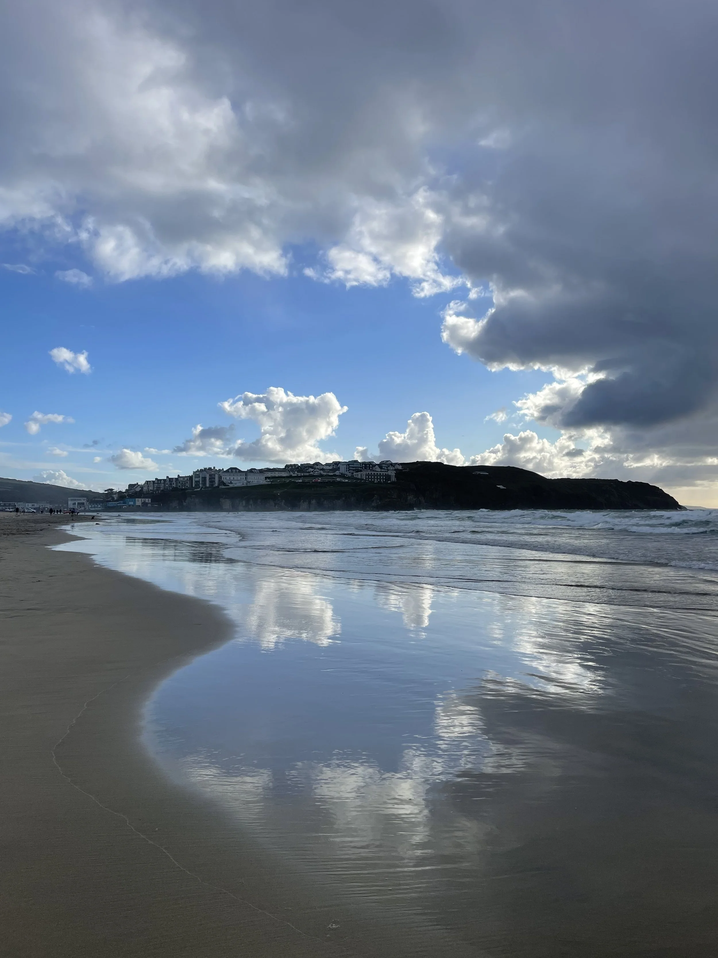 If I’m struggling for inspiration, I often try to look for reflections in my surroundings. As a property photographer, we can get creative with mirrors and windows, but you can also do this with water. Here, the sky was perfectly reflected in the shallows at Perranporth beach. While the blue sky gives it a brighter feel, the dark clouds create a natural vignette around the photo – this is probably my favourite image from the trip.